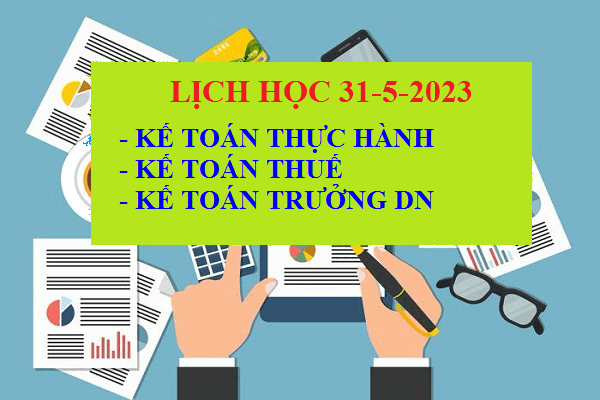 Lịch học 31-5-2023 kế toán tổng hợp thực hành, kế toán trưởng, Marketing quảng trị DN, kế toán thuế